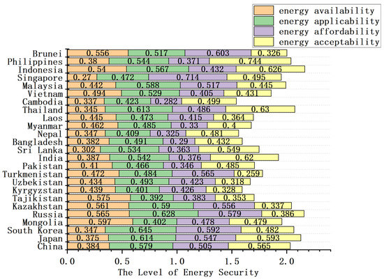 Figure 3 shows the average level of energy security for each country under the “4A” framework.