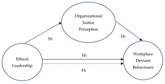 In addition to being ethical role models, leaders can affect employees’ organizational justice perception and ethical and/or deviant behaviors [7]. In this regard, the relationships between the current study’s variables can be built on solid ground by depending on Adams’ equity theory and social exchange theory. In the context of Adams’ equity theory [8], individuals’ perceived inequality will encourage them to struggle to rebalance equality, and the magnitude of motivation to struggle will be balanced with perceived disparities. Social exchange theory [9], which constitutes a basis of organizational justice, deals with social life as a series of successive transactions between two or more sides. Resources are exchanged through a reciprocity process in these transactions. The quality of the exchange relationship with the organization is determined by the employee’s perception of justice. Employees will feel obligated to create good behavior in return if they are treated fairly by the organization and its managers. Employees who feel the organization does not properly appreciate their efforts may engage in rude and deviant behavior [10]. Brockner and Wiesenfeld [11] state that organizational justice affects the individual’s satisfaction with the results of any decision so that the employee will develop an attitude toward the work, the organization, and her friends, which will turn into performance results. Given this, it can be thought that the perception of organizational justice can play an essential mediating role in reducing employees’ deviant behavior through ethical leadership in organizations.