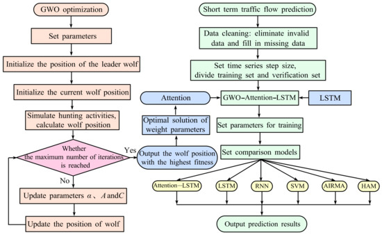 Short-term traffic flow prediction steps are based on GWO-attention-LSTM.