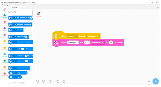 LEGO EV3 mobile robot is programmed using EV3 Classroom LEGO® Education, a standard LEGO icon-based software to create executable code for the EV3 containing the original LEGO firmware. It is a worthwhile highlight that even though employment the EV3 Classroom LEGO® Education for programming, any other programming tool can be implemented.