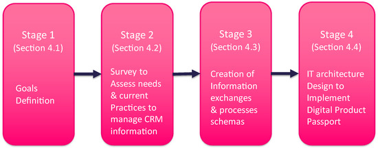 Overview of the development stages carried out to design the circular CRM supply management system.