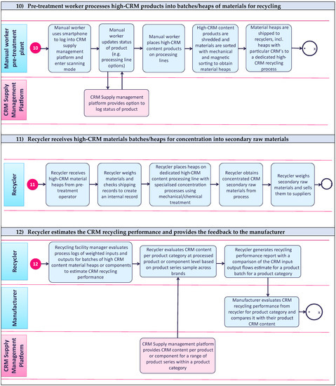 - The feedback loop of CRM recycling performance of products and components into secondary raw materials from recyclers to manufacturers, for purposes of improving product design to enhance recovery and recycling (workflow 12 Figure 2);