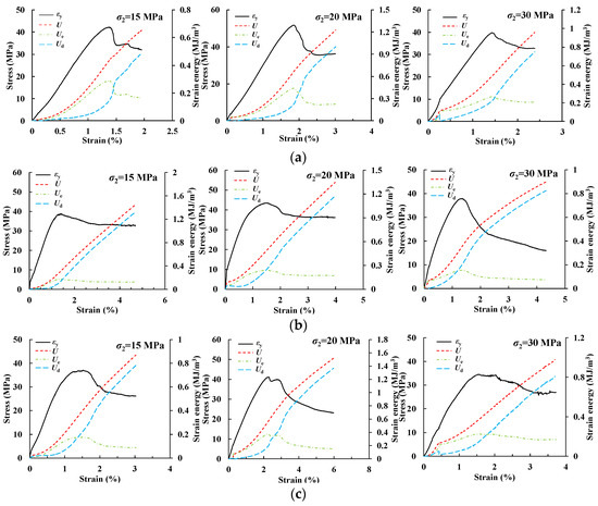 3.1. Energy Evolution Characteristics of Dry and Water-Saturated Coal under Different True Triaxial Stresses