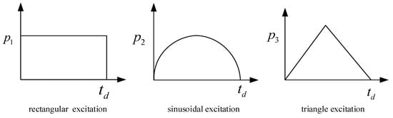 When the impulse generated by the three kinds of pulse excitation is the same, the ratio of the peak force is . For different levels of pulse excitation, is