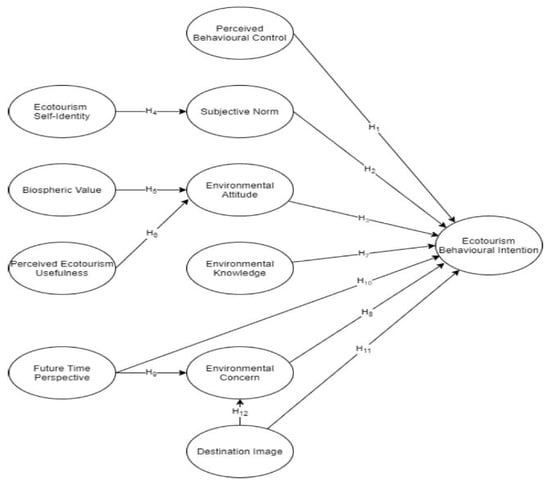 The relationship between perceived behavioral control and behavioral intention in the context of tourism in general and ecotourism in particular has been found previously. Seow et al. found a positive relationship between perceived behavioral control and behavioral intention in the case of medical tourism in Malaysia []. A positive relationship between perceived behavioral control and the behavioral intention was also found in the context of ecotourism by Tsung and Jan [], where there is a positive and significant relationship between perceived behavioral control and ecotourism behavioral intention in the case of nature-based tourism sites in Taiwan. Therefore, the first hypothesis in this study is: