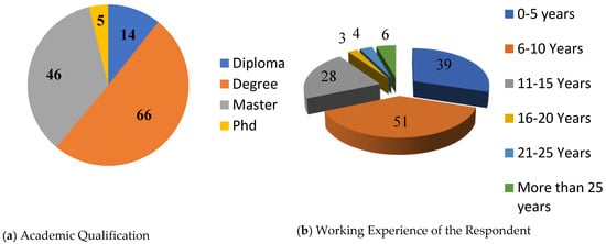 The vast majority of survey respondents have engineering degrees, according to Figure 2. Furthermore, these respondents have a long history of working in the construction industry. The participants hold a variety of positions within the projects, including director, project manager, and engineer.