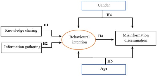 As noted earlier, misinformation has remained one of the major issues during the COVID-19 outbreak. Particularly because of the wider availability of social media and other Internet platforms, this issue further harmed efforts to mitigate the impacts of COVID-19 [42]. However, existing literature also indicates a prominent difference regarding the gender and age of social media users and those information gathering, seeking, and misinformation spreading [43]. A study conducted by [44] indicated a clear difference between social media users and the gender of the respondents. They found that males mostly used social media for gaming purposes, while females preferred social media for information-gathering purposes. Age is another primary variable that affects the motivations and usage patterns among social media users [41].