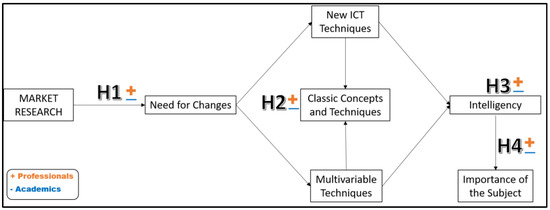 This paper aims to provide empirical evidence for the reflections of Malhotra and Peterson [8]. They reflected on the influence of new smart technologies on MR research methodologies. However, they should have specified them and addressed the issue of necessary university training to use the new MR methodologies. Therefore, this work conducts a comparative study between university professors and professionals from large MR companies to determine the incorporation of new statistical and digital technologies into MR courses offered at the university level [6]. More specifically, this study also examines preexisting points in programs that may reduce or remove [9] the need to facilitate the adaptive change of MR.
