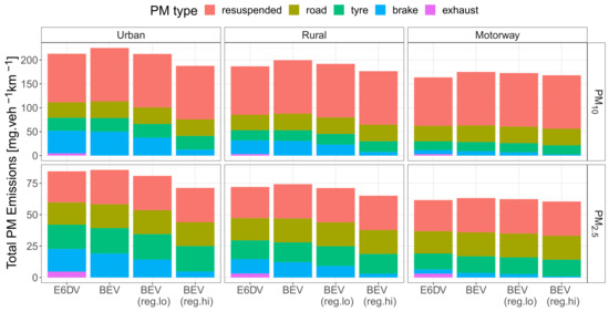/ ratios for both vehicle types are ca. 0.55, consistent with those estimated for road emissions in UK NAEI guidance [26], and the model predicts a ca. 7% increase in related road dust as a result of the investigated E6DV-to-BEV bus transition.