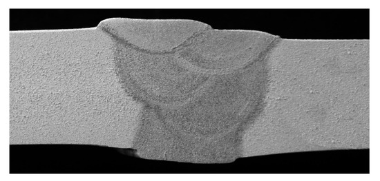 For the protection of the welded joint during GTAW process, a shielding atmosphere was used, made of a mixture of inert gases Ar+70%He+0.015%N2. The testing plates were welded in four passes, including one root pass and four filler passes (Figure 2). The welding parameters, including current capacity, voltage, welding speed and the calculated welding heat input, are shown in Table 4.