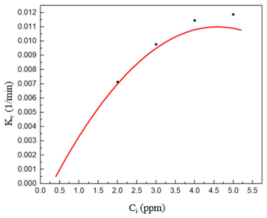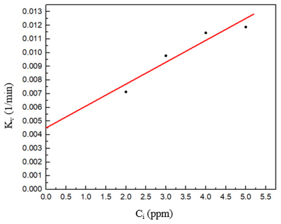 - Method 1: was calculated by fitting experimental data and the Yoon–Nelson model at high concentrations (2.0–5.0 ppm). The linear function relationship of and was established to predict at low concentrations (0.5 and 1.0 ppm or lower).