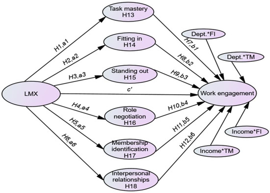 In socialization literature, the work contributed by Song and Chathoth [24] is one of the few studies that address the foregoing mediation issues. In particular, they document that the effect of socializees’ core self-evaluations on their job performance is transmitted both totally by the six adjustment-specific mediators and specifically by parts of these mediators. In this vein, an argument could be extended to expect that the adjustment-specific resources function as the mediating mechanisms between LMX and work engagement. This extension is particularly necessary because work engagement, as well as its proximal and distal antecedents and consequences, are becoming, as per existing works (e.g., [7]), new and alternative pathways to organizational socialization. To our best knowledge, there has been a lack of empirical evidence on the aforementioned extension thus far. We, therefore, expect that the six adjustment-specific resources collectively and totally mediate the LMX–engagement relation, leading to a thirteenth hypothesis.