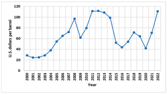 - Energy Information Administration (EIA). 2022. Available online: http://www.eia.gov/dnav/pet/pet_pri_spt_s1_a.htm (accessed on 8 December 2022).