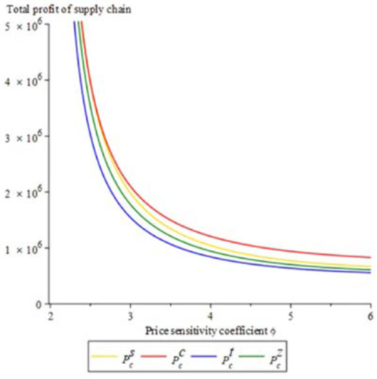 Price-sensitive coefficient’s influence on the gross profit of supply chain.