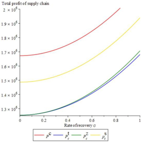 The comparison results of the total recovery of the supply chain under different right structures are as follows: