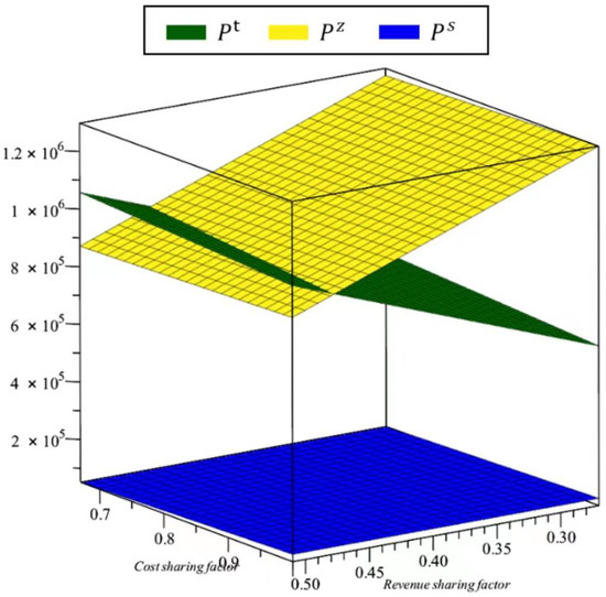 The equilibrium solution needs to meet , , to achieve the coordination goal of the total profit level of the supply chain under centralized decision making, so . Substitute the above solution into the profit function of each participant to obtain .