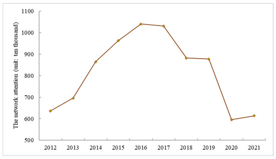 The annual change of network attention to 5A scenic spots from 2012 to 2021.