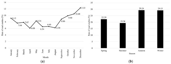 Figure 7a), when external conditions are not optimal for the elderly; however, even in this case, there is a steady distribution of accidents across the months. Seasonal changes in accident data confirm the previous statement and show a higher percentage of accidents in autumn and winter (