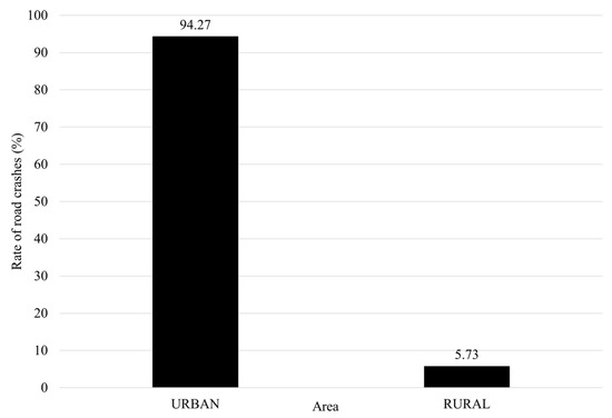 Figure 9, while only 5.73% of accidents occur on rural roads. A more detailed analysis of the places where these types of accidents occur (