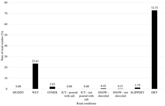 Figure 11 shows that the road surface is mostly dry (72.75%) and in some cases wet (23.41%).