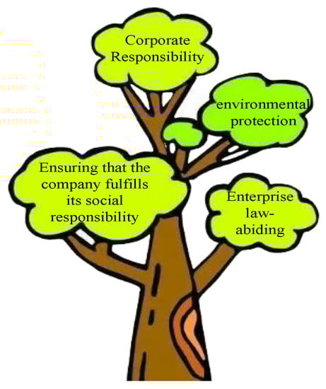 As shown in Figure 1, at present, China and even other countries in the world have no exclusive laws related to corporate social responsibility. Enterprises are related to multiple interests in the process of operation and are under the game of interests of all parties. All these factors are affecting the development of enterprises. Under the legal economy, it is very important for enterprises as managers and regulators to standardize and legalize various of their social responsibilities []. Compared with large, listed companies, most small- and medium-sized enterprises do not have the concept of public welfare responsibility, so they rarely participate in public welfare undertakings. First, SMEs do not contribute enough to the community. Generally speaking, SMEs tend to focus on their own economic benefits, rarely participate in community activities, and rarely communicate with the community. Even when the interests of the community conflict with the interests of the enterprise, enterprises tend to make choices that are beneficial to themselves, resulting in the failure to protect the interests of the community. Second, small- and medium-sized enterprises invest less in charity. Most small- and medium-sized enterprises do not assume social charity responsibility due to management or economic reasons.