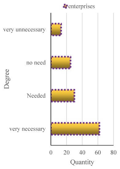 In order to further understand the attitudes of enterprises towards social responsibility, the necessary degree of social responsibility considered by these 150 enterprises was investigated and analyzed, as shown in Figure 6.