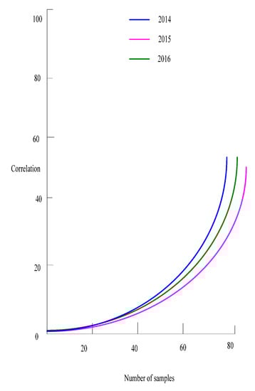 The grey correlation degree of and is determined. There are many original data of correlation coefficient and the information is too scattered and difficult to compare. Therefore, the correlation coefficient at each instant must be concentrated on one value. The most efficient way to process this information is to take its average, as in Equation (2):
