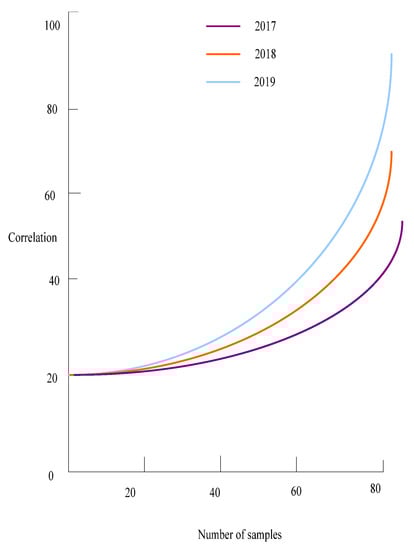 As shown in Figure 7, the social responsibility variables are significantly correlated at the level of positive correlation. From this point of view, the variables are still statistically significant. In particular, the absolute value of the coefficient of the social responsibility variable in 2019 reached more than 80%, which indicated that the corporate social responsibility in 2019 was significantly positively correlated with sustainable development. The coefficients of social responsibility variables in each year are only lower in 2015 and some of the assumptions in this paper are proved. It can be seen that the impact of corporate social responsibility on the enterprise is a process. Undertaking social responsibility has a positive effect on the future development of an enterprise.