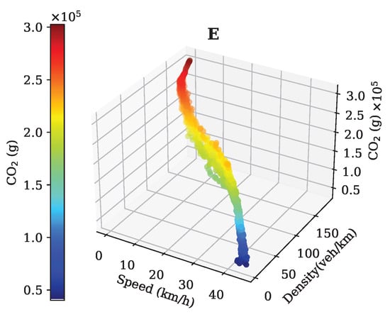 Previous studies found that emission levels correlate with macroscopic traffic network state characteristics, such as density, speed, and flow [9,13]. Recently, [14] combined MFD, COPERT III model [15], and VT-CPEM model [16] to develop CE-MFD (Carbon Emission MFD). In that study, the electric and regular vehicle flows were calculated by multiplying the network flow from the MFD by each vehicle type’s penetration rate. Then, each vehicle type’s flow was fed to the related macroscopic emission model (Copert for regular vehicles and VT-CPEM for electric vehicles). Eventually, CE-MFD was developed based on the total emission of vehicles (summation of both electric and regular vehicle emissions). While this approach simplifies the emission calculation, the drawbacks of macroscopic models such as [15] were discussed and presented here are in place. Also, there was no comparison with the microscopic emission models to quantify the accuracy of CEI-MFD.