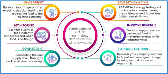 - REAMIT. Benefits to Stakeholders for Participating in the REAMIT Project. 2022. Available online: https://www.nweurope.eu/projects/project-search/reamit-improving-resource-efficiency-of-agribusiness-supply-chains-by-minimising-waste-using-big-data-and-internet-of-things-sensors/#tab-7 (accessed on 29 August 2022).
