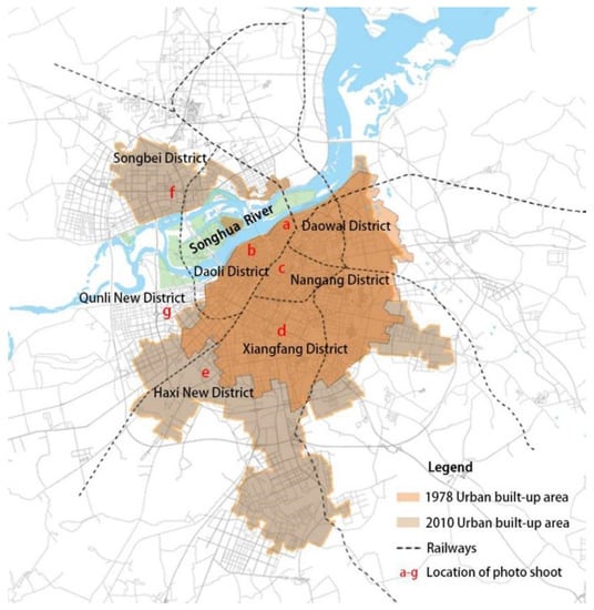 Regional division of the new and old urban areas in Harbin. Source: modified according to the impression of Harbin.