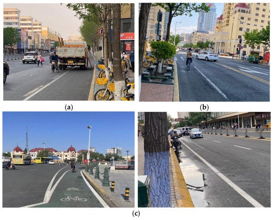 In 2020, Hardinghau et al. used a multinomial mixed logit discrete choice model to investigate the impact of route preference and road infrastructure on cyclists in Greece and Germany. They concluded that route preference is more affected by road environment and that bicycle infrastructure is more effective at attracting cyclists []. In 2021, Xu Jun et al. established a cyclist satisfaction model for different bike lanes, and the results showed that the most important factor affecting cycling was to ensure the safety of cycling []. In 2021, Liu Yan et al. used the hierarchical logit model and hybrid choice model to analyse the impact of improving the cycling environment on residents’ travel behaviour and concluded that improving the cycling environment would significantly drive bus, subway, and private car passengers to choose bicycles [].
