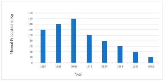In recent decades, driven by global demand for natural resources, the extractive industries of the African continent have expanded enormously, leading to a change in history. One day, when African countries woke up, their natural resources suddenly increased, becoming the most resource-rich country among many nations [29]. This growth has transformed mining in Congo, which has consistently been ranked as one of the most resource-rich countries. Resource growth fueled socioeconomic development, and periods of mining expansion corresponded to four periods of solid industrial growth in Congo. The four periods in Table 1 (colonial, 1960–1980, 1980–2004, and 2005–2025) allow for distinguishing the evolution of mining equipment and natural resource demand in the Congo, but these periods were later divided into two main periods (1960–1995 and 1980–2025). Mining in Congo began well before the 20th century, with artisanal mining in the country’s south around 1900. This continued in the north of the country between 1938 and 1959. Beginning in the 1960s, the country experienced a new wave of independence. Therefore, the government will empower its people to mine across the country. Congo subsequently experienced low industrial mining production in the 1980s. Operations had to be suspended after the Soviet Union withdrew technical assistance and raw material prices fell. Then, between 1980 and 2004, industrial mining ended, and political unrest waned. Finally, the new mining law of 2005 and the mining revival of 2005–2025.