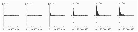 As shown in Figure 6, the autocorrelation coefficient of the sample shows a stable decreasing trend, which indicates that the sample data are smooth. The autocorrelation coefficient of parameter samples decreases gradually, and its fluctuation tends to zero after 500 times of MCMC. Figure 7 represents the smoothness of the sample fetching path, and it can be seen from Figure 7 that the sample path shows an overall up-and-down fluctuation with fewer extreme values, i.e., the sample fetching path is smooth. In addition, the graph in Figure 8 resembles posterior densities, indicating that the samples obtained by MCMC sampling with predefined parameters are valid. In addition, the inefficiency factors are quite low and the 95% confidence intervals include the estimated posterior mean for each of the parameters estimated. Therefore, the results show that posterior draws are efficiently produced by the MCMC algorithm.