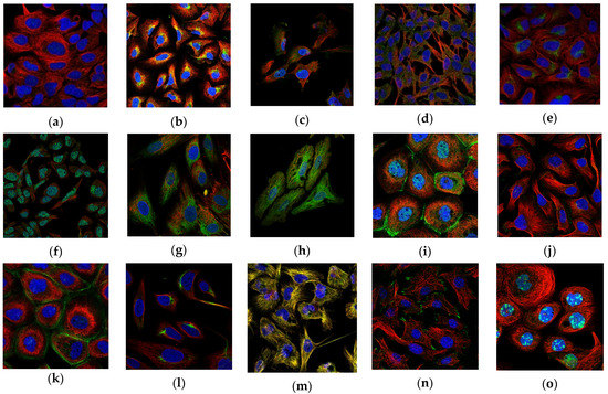 - Boland, M.V.; Murphy, R.F. A neural network classifier capable of recognizing the patterns of all major subcellular structures in fluorescence microscope images of HeLa cells. Bioinformatics 2001, 17, 1213–1223. [Google Scholar] [CrossRef] [PubMed]