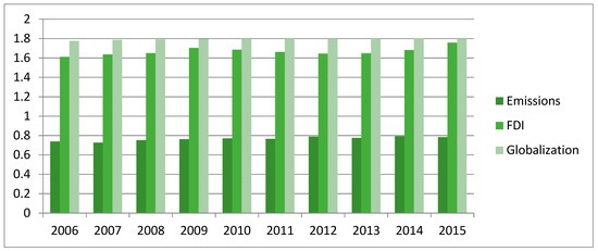 The beliefs cited in the Northern America Free Trade Agreement (NAFTA) are the basis of globalization, as has been illustrated in multiple studies [11]. When the outcome increases through foreign trade and investments, it is known as the globalization scale effect. The globalization scale effect is the increase in the outcomes as result of foreign trade and investments. There are various effects associated with this, and two were particularly important in this study: the technique and the composition scales of globalization. This occurs due to the scale effect of globalization. With physical variations, the environment can damage the globalization scale effect. Moreover, with physical variations, the environment can become damaged. This may be due to composition effects resulting from the increase in investment in the production sector [8]. Whenever both the scale effect and economic growth become equal, concepts related to new methods of production come about, which is known as the globalization technique effect. This overall process reduces CO2 emissions, for investment and trade that is pollution free.