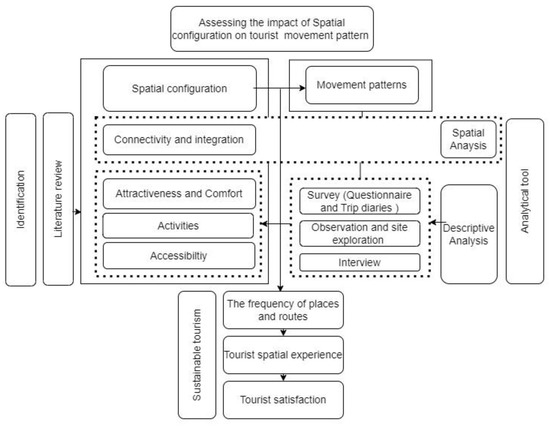 Many tourism organizations, including the UNWTO, have stressed the importance of investigating and evaluating the spatial configurations of tourist destinations and their effect on tourist satisfaction [12,23]. Arrangements and interventions of the built environment, such as visual accessibility, signage systems, streetscapes, and the distribution of activities, may improve or prevent the ability of tourists to explore tourist destinations and create movement patterns [10]. This necessitated the investigation of spatial movement constraints and the development of novel approaches to improve the quality of the spatial experience within destinations [10,12,23]. Therefore, studies on tourist movement and patterns by researchers and city planners have increased as of late [16]. The primary focus of such research is on the tourist movement patterns and spatial characteristics that impact them. The research results can have many implications for destination development and management.