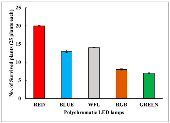 - Poudel, P.R.; Kataoka, I.; Mochioka, R. Effect of red- and blue-light-emitting diodes on growth and morphogenesis of grapes. Plant Cell Tissue Organ. Cult. 2008, 92, 147–153. [Google Scholar] [CrossRef]