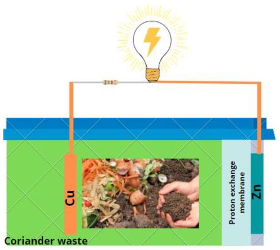 - Rojas-Flores, S.; De La Cruz-Noriega, M.; Nazario-Naveda, R.; Benites, S.M.; Delfín-Narciso, D.; Angelats-Silva, L.; Murga-Torres, E. Use of Banana Waste as a Source for Bioelectricity Generation. Processes 2022, 10, 942. [Google Scholar] [CrossRef]