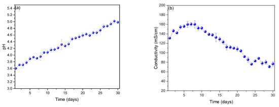 - Stefanova, A.; Angelov, A.; Bratkova, S.; Genova, P.; Nikolova, K. Influence of Electrical Conductivity and Temperature in a Microbial Fuel Cell for Treatment of Mining Waste Water. Annals of the Constantin Brâncus, i University of Târgu Jiu, Letters and Social Science Series, 2018; Volume 3, pp. 1–7. Available online: https://www.utgjiu.ro/rev_ing/pdf/2018-3/02_A.STEFANOVA%20-INFLUENCE%20OF%20ELECTRICAL%20CONDUCTIVITY%20AND%20TEMPERATURE%20IN%20A%20MICROBIAL%20FUEL%20CELL%20FOR%20TREATMENT%20OF%20MINING%20WASTE%20WATER.pdf (accessed on 29 November 2022).