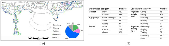 Identifying the patterns of human behavior can be achieved by systematic observation methods. Behavioral mapping is a well-known method, used in this respect for recording human behavior in particular locations [16]. This mapping method can be focused on places or individuals [17]. Place-centered mapping is suitable for assessing the usage of a particular area by recording the locations and activities of its users. On the other hand, individual-centered mapping is appropriate for recording the movements and activities of individuals in a place over time. Both methods of mapping can also be combined.