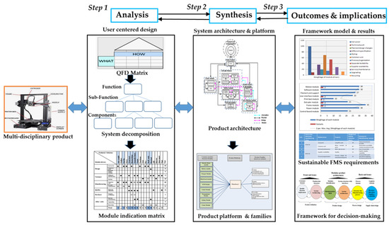 The overall approach comprises three steps, i.e., analysis, synthesis and outcomes, as given in Figure 1. The analysis represents the QFD, system decomposition and MIM. Synthesis includes product architecture and platform, while the product implications and results were displayed in the outcomes.