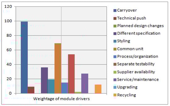 In the module interaction matrix, each technical solution is assessed with respective module drivers on a scale (9, 3, and 1) according to the importance of its reasons for becoming a module. According to this method, highly weighted and many and unique module drivers points toward the technical solution under consideration are likely to form a module. For example, the technical solution ‘stepper motor’ has higher scores in carryover, common unit, and separate testability due to its strong relationship with them. This is because the motor is carried from one generation to another and is a part of every printer as a common unit. In addition, the motor can be separately tested or outsourced to supplies. Due to its higher weight and unique module drivers, it might be a strong candidate for a separate module named as motion module.