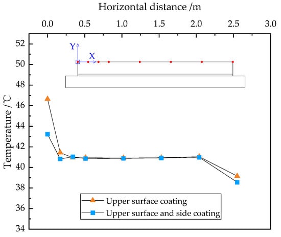 The transverse temperature distribution of the upper surface before and after side coating.
