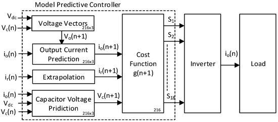 Optimal control can be easily employed with the help of MPC for numerous objectives. It has a good attraction in the control system because of its characteristics such as essential decoupling, rapid dynamic response, reactive power compensation, and the easy addition of constraints [15,16,17,18,19,20,21,22,23,24,25,26,27,28,29,30]. The finite control-set model predictive control (FCS-MPC) has grown quickly in the last decade, covering many fields, such as UPS, renewable energy systems, electric grids, multi-level converters, electric drives, etc. [31,32,33,34,35].