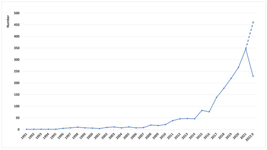 Number of publications on urban sustainable transportation annually (1991 to 30 September 2022).