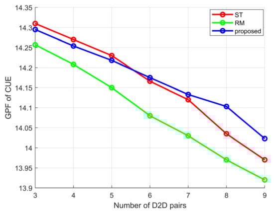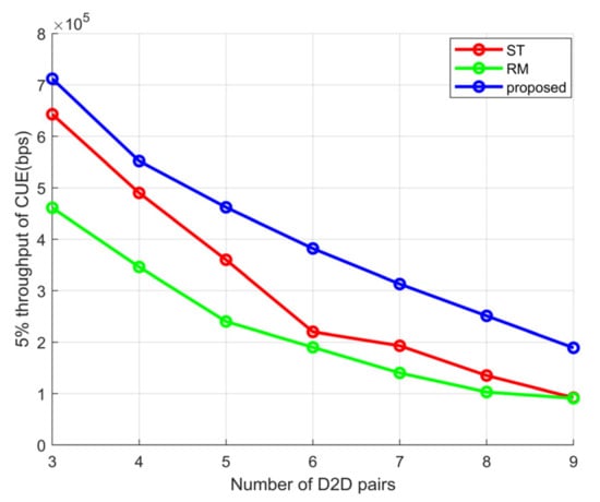 - The system simulation experiment first proves the effectiveness of the proposed algorithm. At the same time, the comparison of related algorithms shows that the proposed algorithm effectively guarantees the communication quality of cellular users and improves the system throughput and interference management capability.