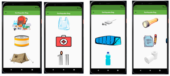 Figure 7. It provides information about the items that should be owned by people during emergency situations. Basically, as an emergency situation, an earthquake is considered in the application.