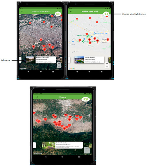40] is also considered and worked on in DepApp. The page of safe areas shows safe locations to go during and after an earthquake in DepApp. With this page in the application, it is provided to show users safe areas where they can be protected and take shelter in case of an earthquake.