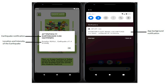 In a different study, a network-based early warning system was created with a mobile application for Android devices that could receive alerts created by the system. The system was provided by transferring seismic warnings to mobile devices. In the absence of warnings, the latest information about where the earthquake occurred could be given with up-to-date data. The application had a special method to estimate the expected area in the event of an earthquake. It could give a warning message in a special way in order to inform the user about the appropriate reactions to be made during the earthquake with the intensity of the earthquake and the current occurrence time in the user’s location [